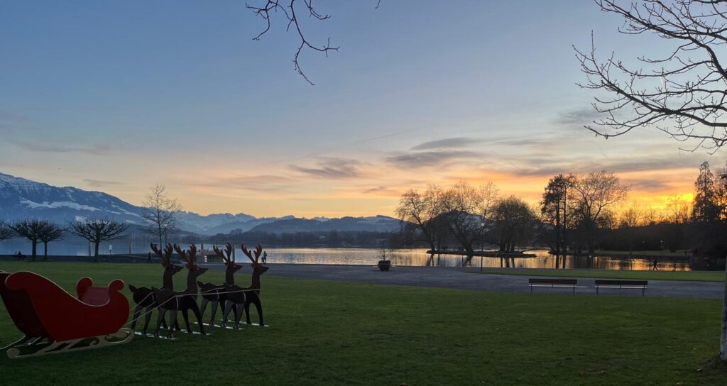 Im Hirsgarten zog und zieht das Rentiergespann viele Chamer und Auswärtige an. Es ist als Fotoobjekt ideal mit dem Park, dem Zugersee und der ganzen tollen Kulisse als Hintergrund und glückliche kleine und grosse Kinder in der Kutsche.