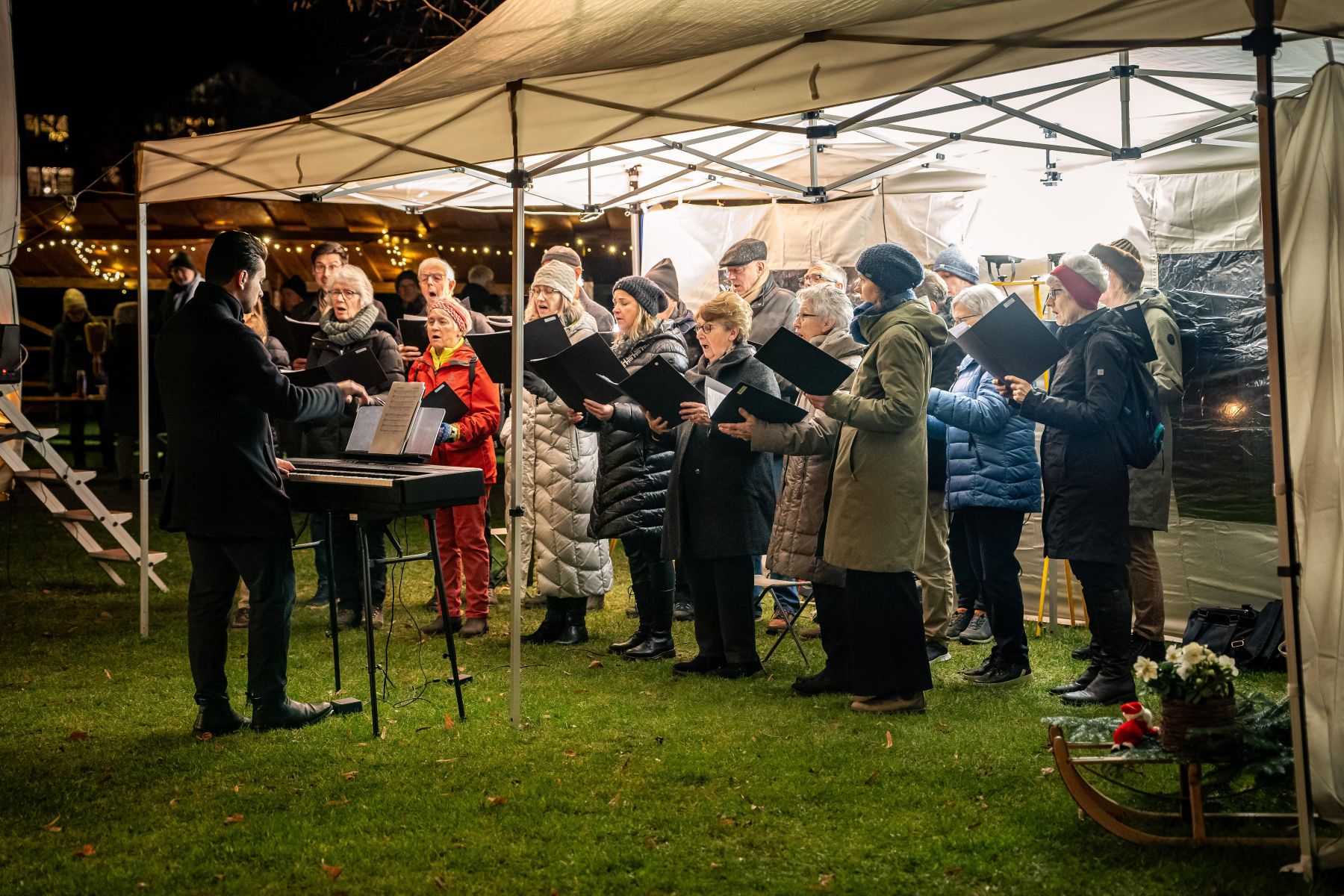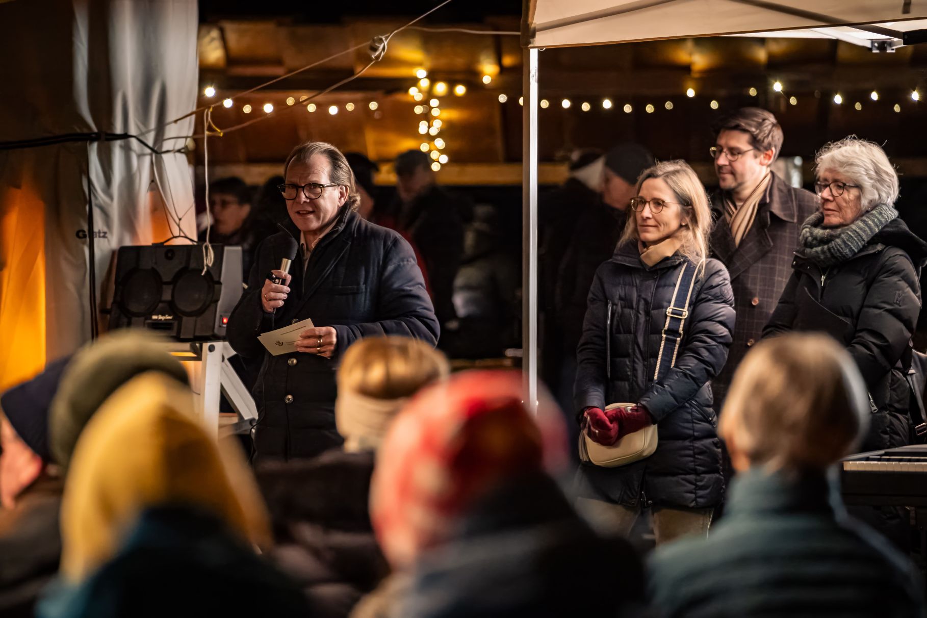 Ab 18.00 Uhr umrahmte der Kirchenchor St. Jakob Cham die Festivitäten mit adventlichen Liedern. Alle Bänke waren besetzt und viel Publikum verfolgte im Stehen rund um den Festplatz das Geschehen. Dies sehr zur Freude des Gemeindepräsidenten Georges Helfenstein und Cham Tourismus Präsidentin Sara Hübscher, welche mit launigen Worten den Anlass eröffneten und rundum Danke sagten.