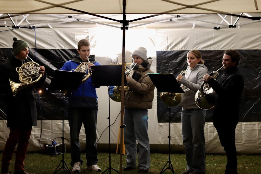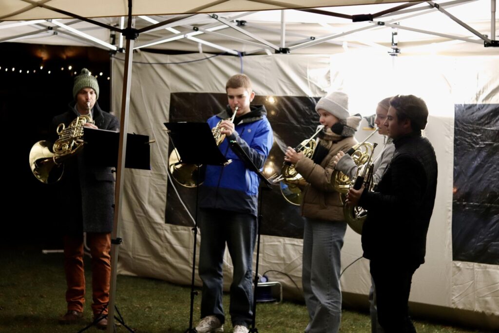 Ein Hornquartett der Musikschule Cham unter der Leitung von Ramon Imlig spielte nach dem 18.00 Uhr Glockenschlag zum besinnlichen Verweilen auf. Die weihnachtlichen Musikstücke motivierten die Zuhörenden Mitzusingen – summen ohne Worte ging natürlich auch – und den festlichen Lichterabend zu geniessen.