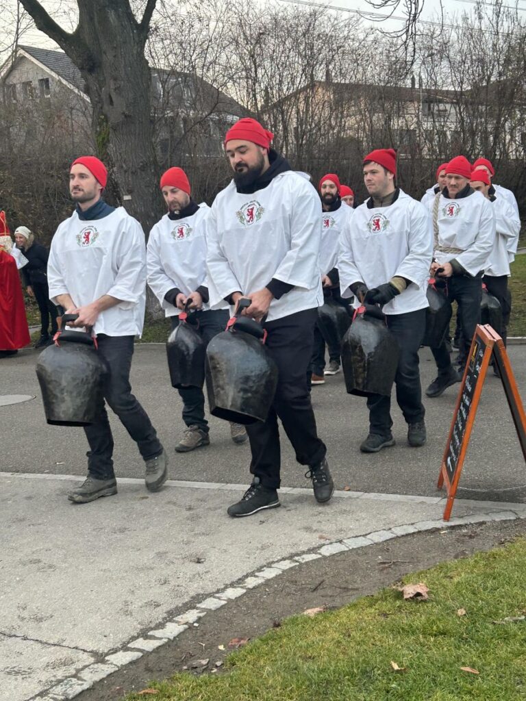 Vorgängig besuchte der Samichlaus mit Schmutzli und einer Gruppe Trychler beim Krippenhäuschen im Villettepark eine grosse Schar Kinder.