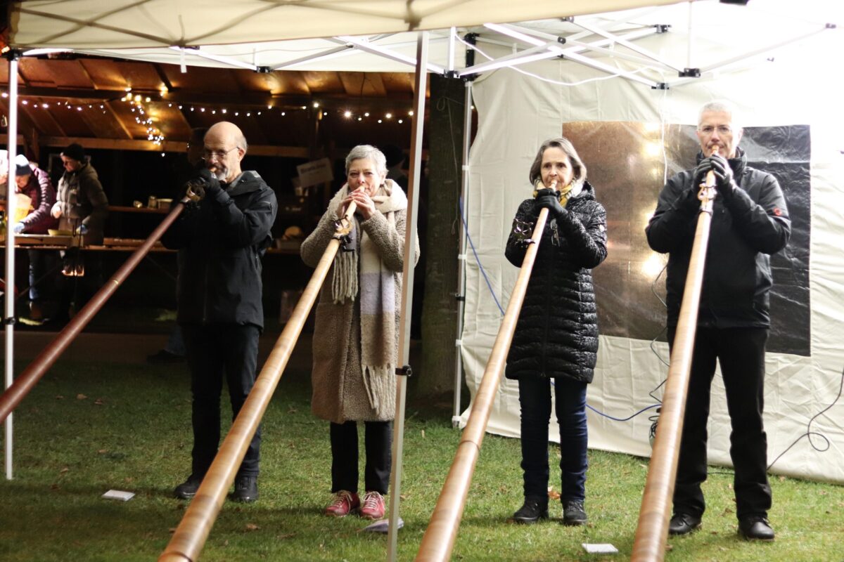 Ein Hornquartett der Musikschule Cham unter der Leitung von Ramon Imlig spielte nach dem 18.00 Uhr Glockenschlag zum besinnlichen Verweilen auf. Die weihnachtlichen Musikstücke motivierten die Zuhörenden Mitzusingen – summen ohne Worte ging natürlich auch – und den festlichen Lichterabend zu geniessen.