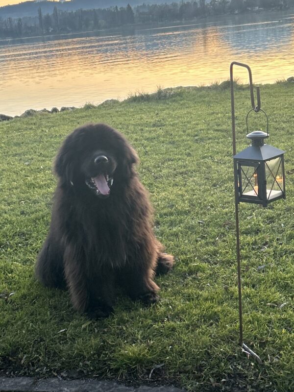 Ein Spaziergang durch den Park lohnt sich und selbst ein schöner zotteliger Hund posiert mit einem Laternli, welches vorher von fleissigen Wichteln angezündet wurde.